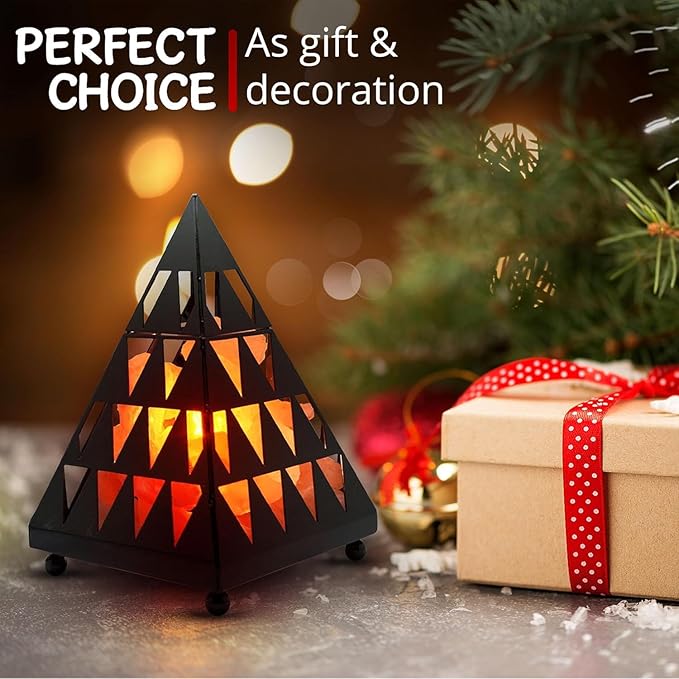 Himalayan Glow Pyramid Style Crystal Salt Night Light lamp with Pink Salt Chunks, Salt Lamp Bulb,(ETL Certified) Dimmer Switch, Unique Lightening Ambience