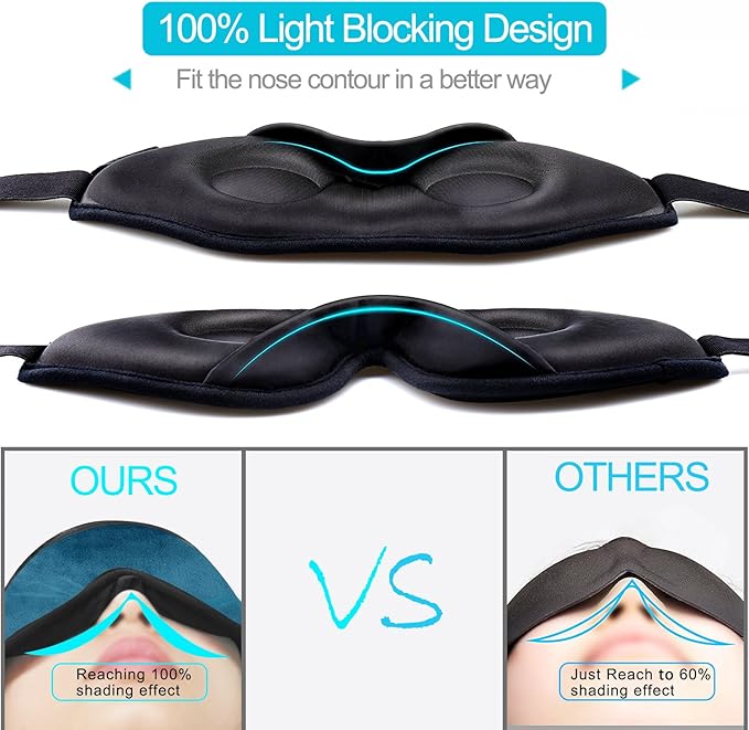 - SLEEP DEEPLY & LONGER IN COMPLETE DARKNESS - Exposure to light during sleep interferes with your sleep cycle. The sleep mask completely blocks out all light and visual stimuli so you can nap or sleep soundly. Pull out this incredibly lightweight, comfortable eye mask anywhere - in a bed, on a flight, on a long car ride, while camping - and enjoy uninterrupted, deep, restful sleep.