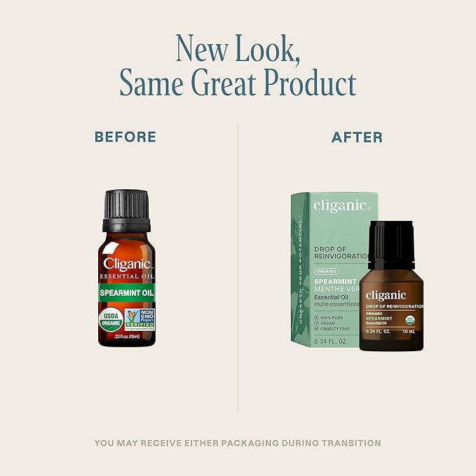 Cliganic USDA Organic Spearmint Essential Oil, 100% Pure Natural Undiluted, for Aromatherapy (10ml) | Non-GMO Verified (Packaging May Vary)