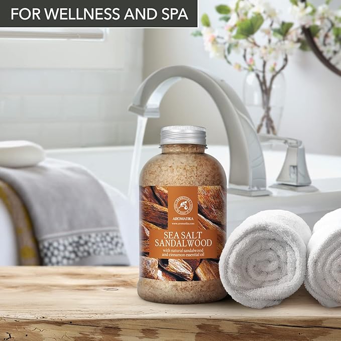 - HEALING SEA SALT Sandalwood enriched with natural essential oil of sandalwood and cinnamon essential oil helps mitigate overall fatigue, raise mood, and boost performance.