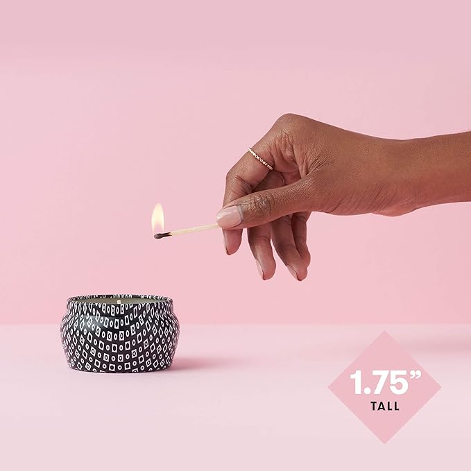 Capri Blue Volcano Scented Mini Tin Jar Candle - Printed Mini Tin Candles for Home Scented with Tropical Fruit & Sugared Citrus - Long Lasting Soy Wax Blend - Black (3 oz)