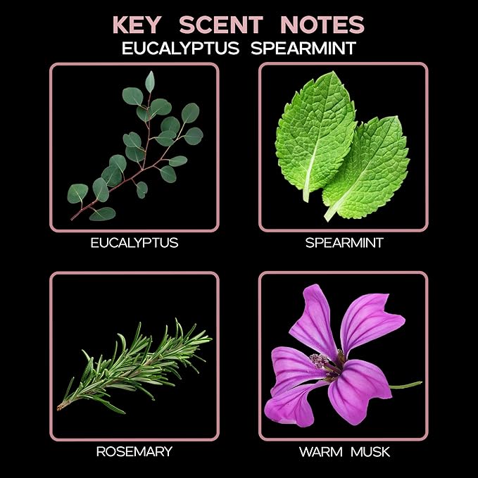 - UNWIND EUCALYPTUS & MINT – is a refreshing blend of Eucalyptus, Spearmint, Rosemary, and Warm Musk; showcased in our Modern Striped Diffuser, a sleek frosted glass bottle etched with clean vertical stripes for a minimalist yet eye-catching look, topped with a slender neck and delicate sage green ribbon accent for a refined, timeless look; complements soft greens, sage, and neutral-toned interiors