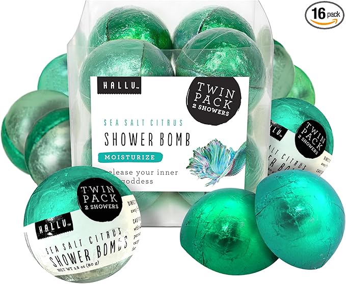 Hallu Mermaid Shower Bomb, Sea Salt Citrus Scent Shower Steamer, 80 g Each, 8 Packs of 2 (16 Total)
