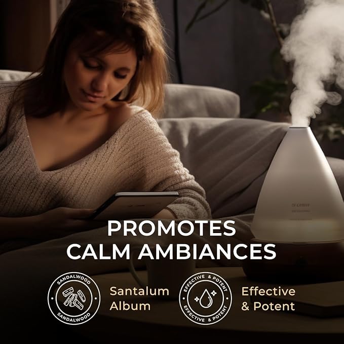 - Home Ambiance Elevated With Ease. Diffuse indian sandalwood essential oil to fill your space with its rich, earthy scent. Ideal for creating a serene environment, transforming living areas into a sanctuary of calm and comfort