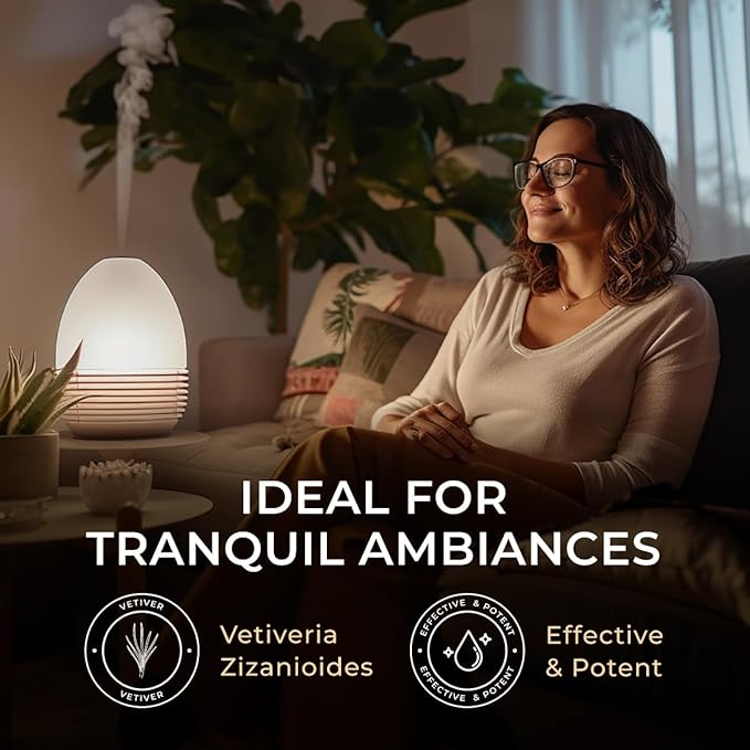 - Tranquility That Transforms. Use vetiver essential oil in a diffuser during your evening routine to create a peaceful atmosphere. This grounding practice promotes relaxation and peaceful nights, letting you drift into restful dreams with ease.