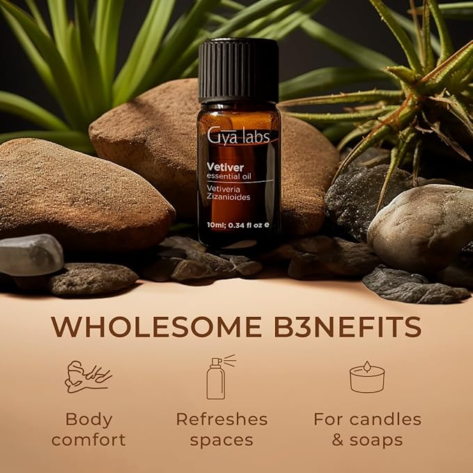 Gya Labs Vetiver Essential Oil - 0.34 Fl Oz - for Hair, Skin, Diffuser, Aromatherapy & DIY Candle Making Scent