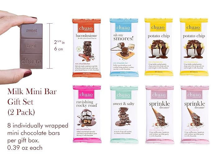 Chuao Chocolatier Milk Chocolate Mini Gift Box | Gourmet Chocolate Assorted Bars European No Preservatives | For Gift Baskets, Christmas, Valentines Day, Birthday, Thank You, Care Package | 16 Pieces