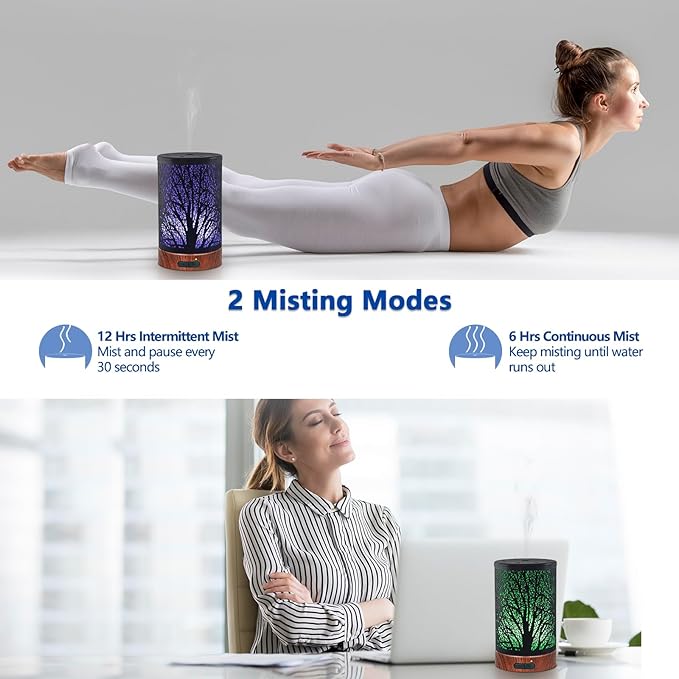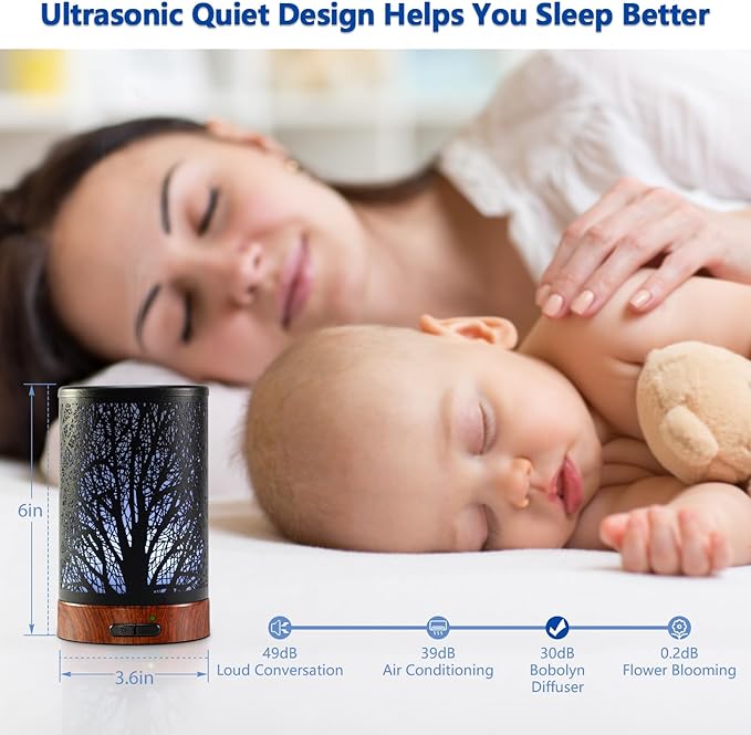 - Whisper Quiet Ultrasonic Technology: Essential Oil Diffuser adopted advanced ultrasonic technology, it is extremely quiet without annoying noise that won't disturb you when you sleep or at work. No heat is used, making it safe for kids and pets.