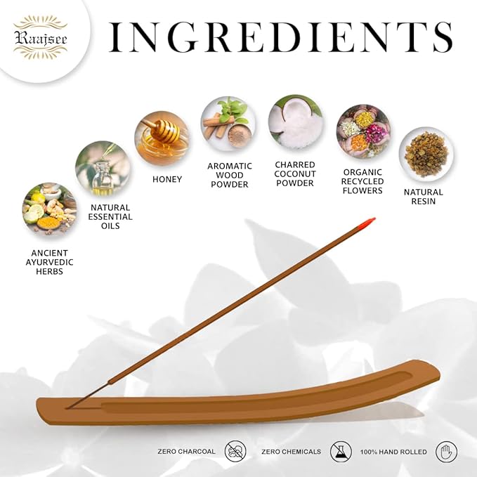 - PRODUCTION METHOD - Hand rolled in India with Indian traditional techniques which lasts longer.Raajsee Incense utilizes fair trade labor and environmentally responsible production methods to give you the best incense around .We lets you be assured that it is free of nasty chemicals like charcoal and other accelerants
