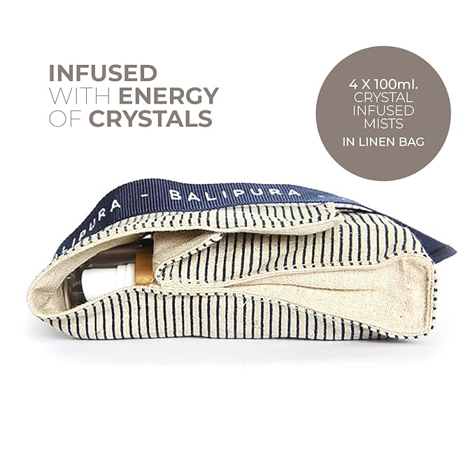 BALIPURA - 4 pc Variety Aura Cleansing Sprays Gift Set with Linen Bag - Infused with Crystal - Organic Essential Oils - 100ml Each