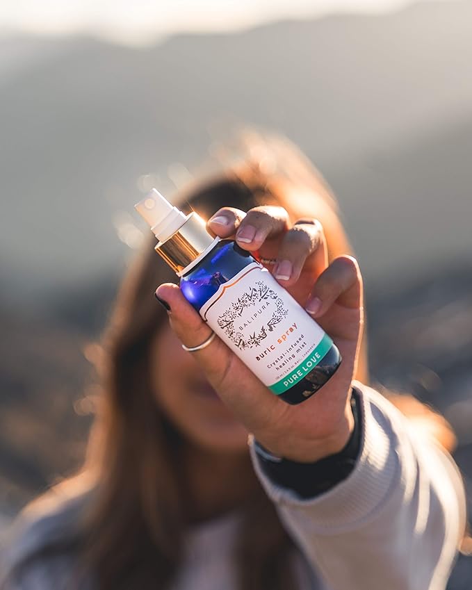 - CRYSTAL-INFUSED MISTS: A set of popular Aura Sprays designed to enhance emotional well-being and promote a positive atmosphere. Includes "Pure Love," "Grounding," "Space Clearing," and "Protection" sprays for daily positivity.