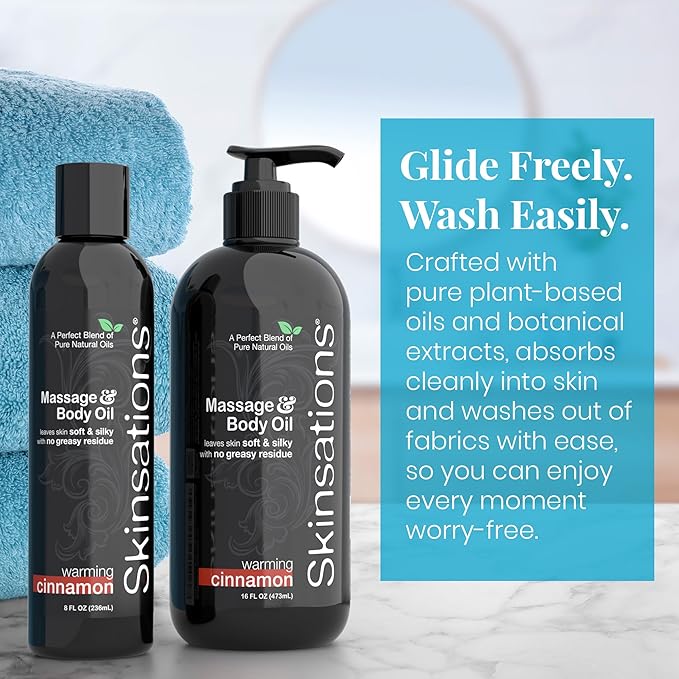 Skinsations - Cinnamon Massage Oil for Massage Therapy - 16oz | Naturally Warming Body Oil for Comfort & Aromatherapy | Sweet Almond, Coconut, Jojoba & Grapeseed Oils