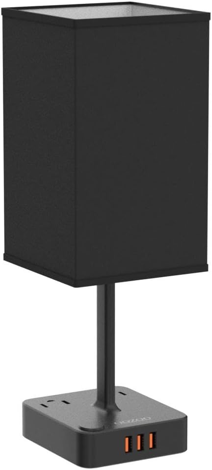 cozoo USB Bedside Table Desk Lamp with 2 USB Charging Ports and 2 Outlets Power Strip,Black Charger Base with Black Fabric Shade, LED Light for Bedroom/Nightstand/Living Room