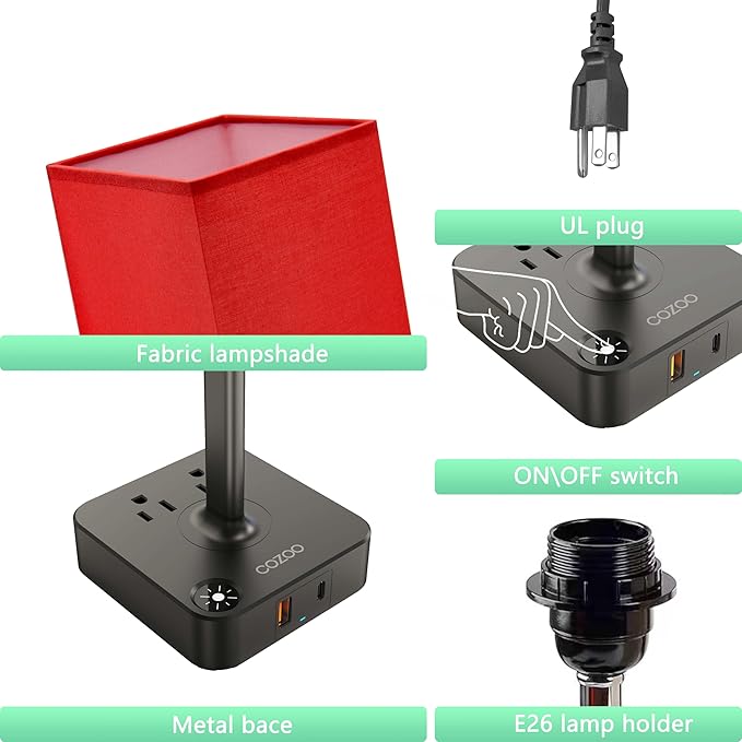 - Widely Application & Suitable Gifts: COZOO minimalist table lamp with black metal base and a stylish linen fabric shade. It could decor your bedroom, living room, guest room. Its additional functions will greatly improve your space utilization.We are commited to providing our customers with an exceptional purchasing experience. We value all suggestions in order to improve our products and services. If you have any problems while using our dimmable nightstand lamps, please feel freely contact us.