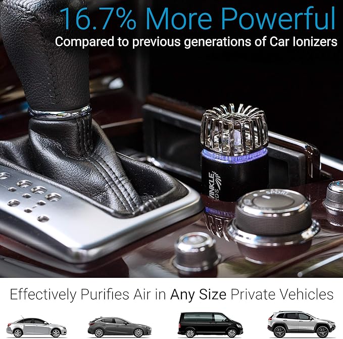 Car Air Purifier Ionizer - 12V Plug-in Ionic Anti-Microbial Car Deodorizer with Dual USB Charger - Smoke Smell, Pet and Food Odors, Allergens, Viruses Eliminator for Car (Matte Black)