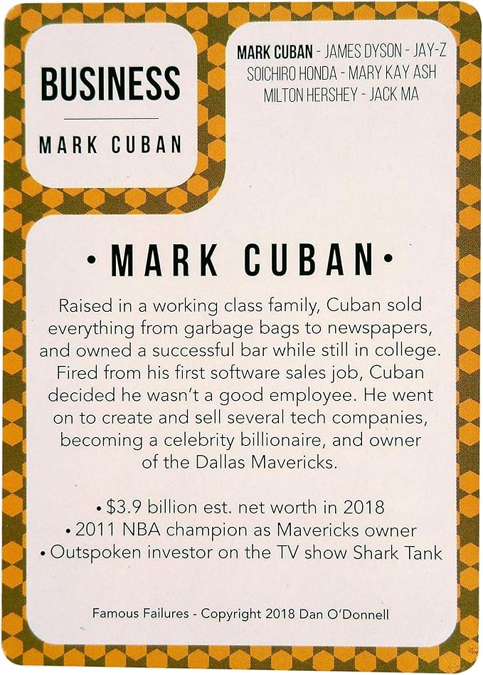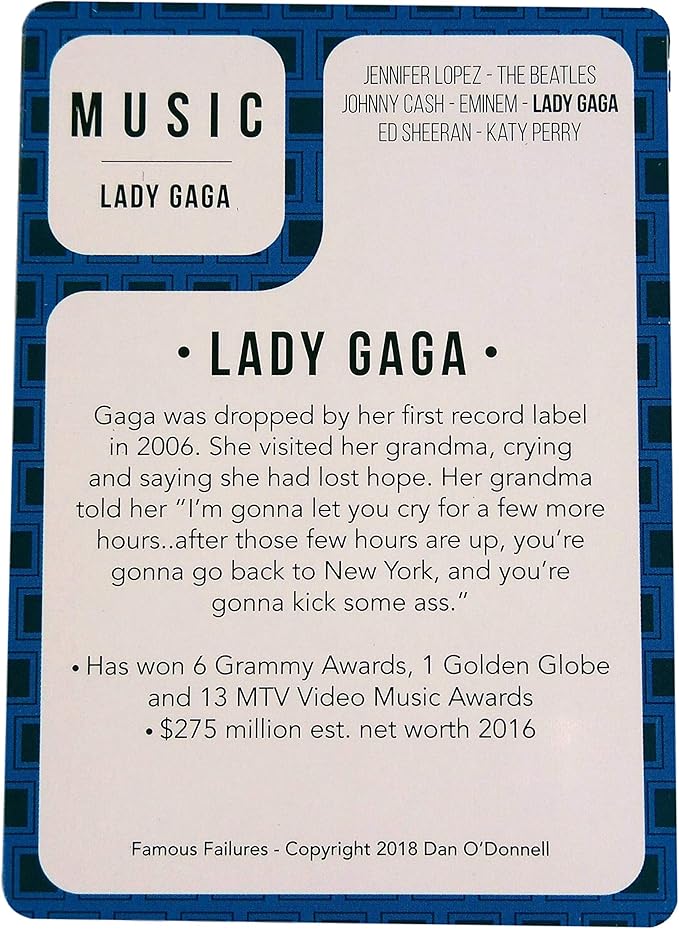 - Similar to "Go Fish", but trickier, this inspirational card game teaches emotional resilience with true stories of Famous Failures, from Jay-Z to Benjamin Franklin & Lady Gaga. Great for family games for kids, teens & parents