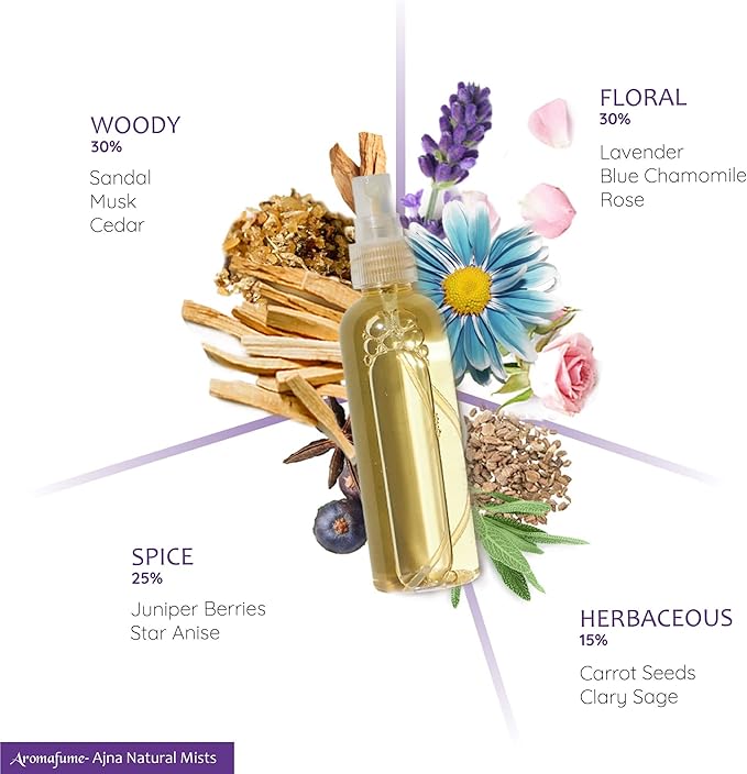 - PACKAGE CONTENTS: 100ml bottle or 3.38 fl oz of Aromafume 7 Chakra - Ajna - Third Eye- Grounding Natural Mist