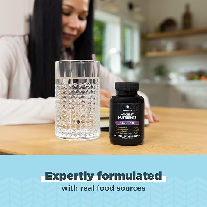 Ancient Nutrition Vitamin B12 Supplement, Supports Energy Metabolism and Nervous System Health, Adaptogenic Herbs, Enzyme Activated, Paleo & Keto Friendly, 30 Capsules