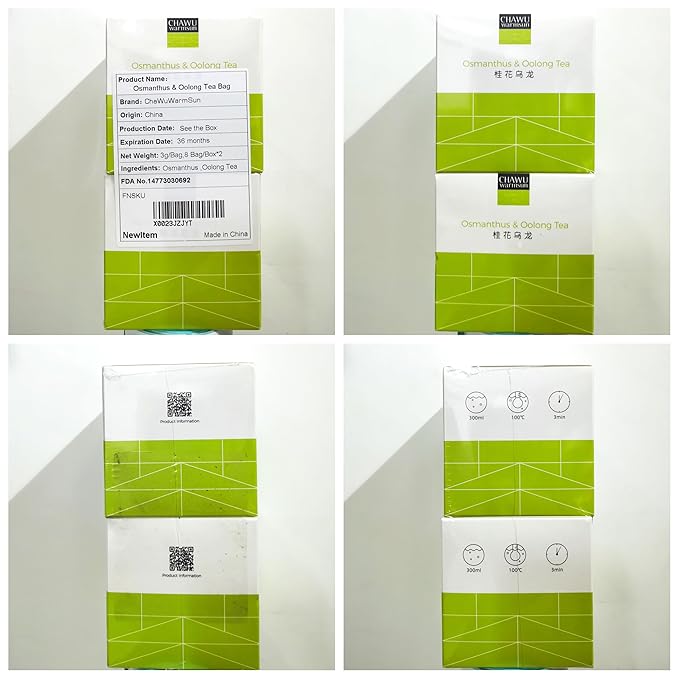 ChaWuWarmSun Osmanthus & Oolong Tea Bags,16 Tea bags,8 Count/Box(Pack of 2),Natural Osmanthus with Light Roasting TieGuanYin Oolong Tea Loose Leaf