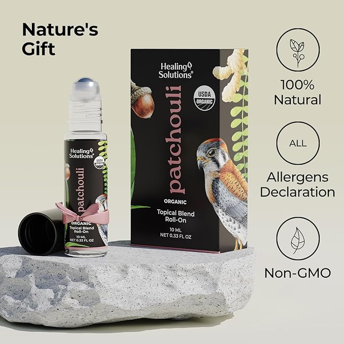 Healing Solutions (2 Pack) USDA Certified Organic Patchouli Essential Oil Roll On Set, Patchouli Body & Skin Roller Perfume for Adults