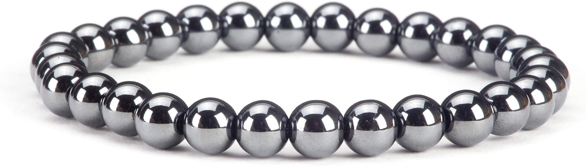 • CONTAINS: A hematite bracelet made with 6mm semi-precious beads packaged inside a protective cloth drawstring pouch. Hematite is a heavy and relatively hard iron oxide mineral. Hematite is the primary ore for iron smelting. After smelting and purification it is cast into beads.