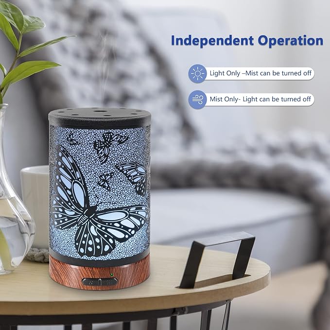 - Special Feature : Automatic Shut-Off, Cool Mist, Multiple Light Setting Metal Oil Diffuser