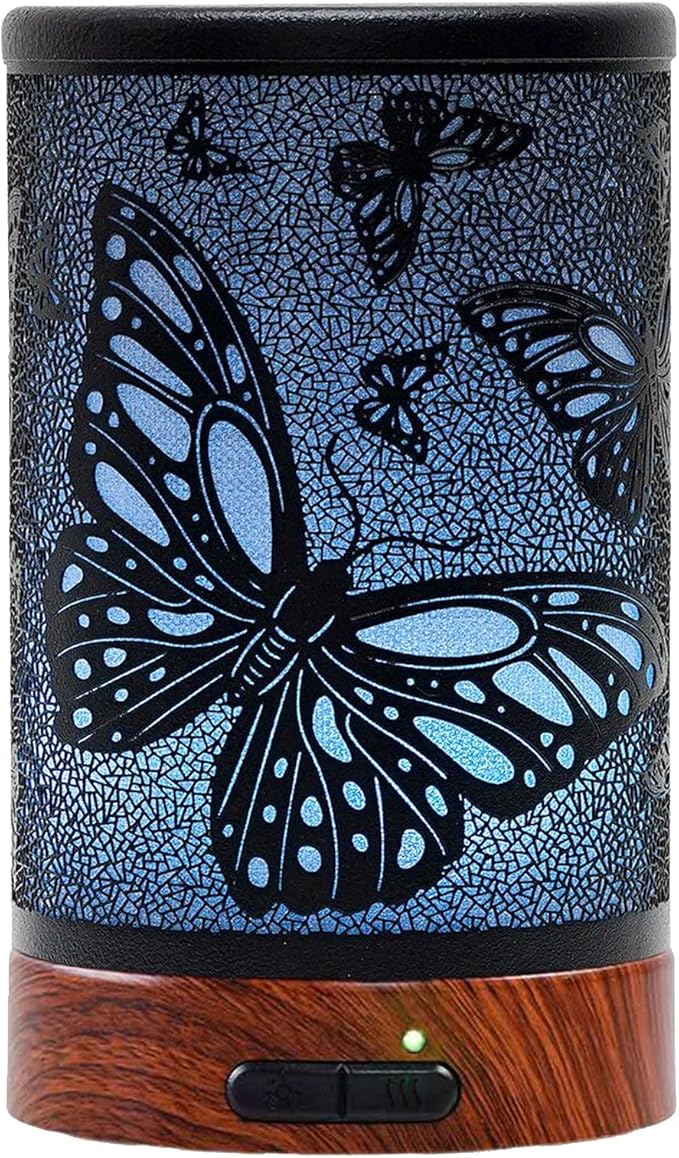 - NOTE: POWER ADAPTER IS PLACED INSIDE THE WATER TANK. Unique Design: Robust metal cover, butterfly pattern design, a perfect addition to any contemporary home, office, gym, spa or studio. Compact and portable, the aroma oil diffuser’s cover can be effortlessly removed, easy to fill with water and a few drops of essential oil, helping you benefit from aromatherapy.