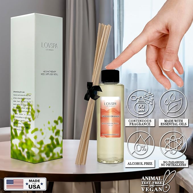 LOVSPA Spiced Orange Diffuser Oil - Holiday Essential Oils for Diffuser Refill & Air Freshener Room Spray - Long-Lasting & Natural Home Fragrance, Scented Oil for Diffusers, USA Made, 4oz
