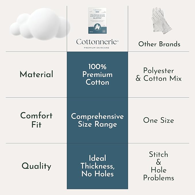 - 100% Premium Cotton: Crafted from 100% natural cotton, these cotton gloves for dry hands sleeping are breathable and perfect for sensitive skin. No polyester, making them ideal eczema gloves and moisturizing gloves overnight.