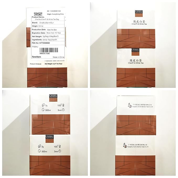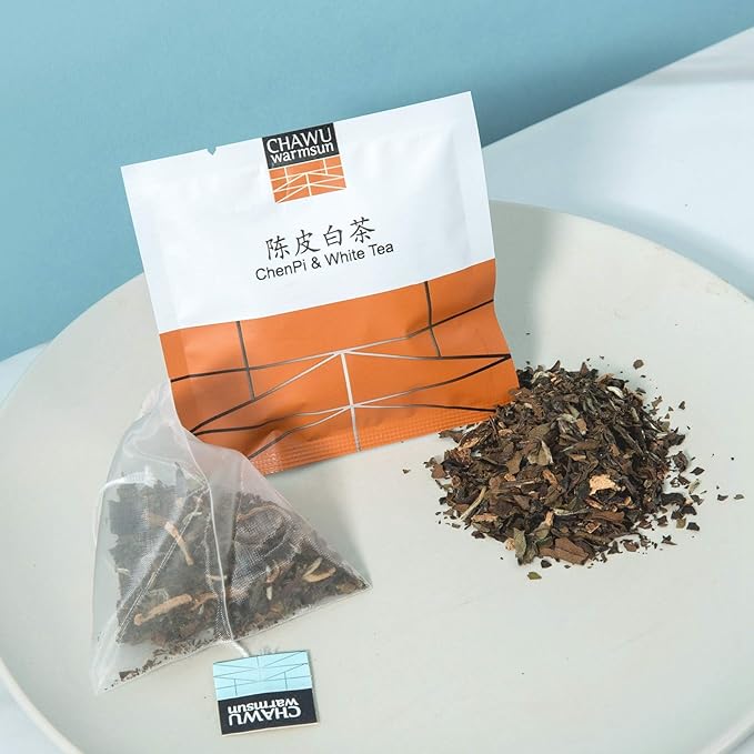 ChaWuWarmSun ChenPi & White Tea Bags,16 Tea bags,8 Count/Box(Pack of 2),3 Years Old ChenPi with ShouMei White Tea Loose Leaf