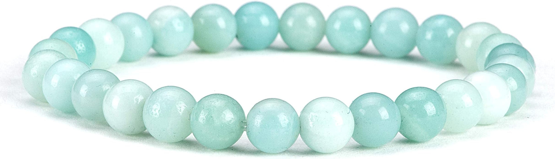 • CONTAINS: An amazonite bracelet made with 6mm semi-precious beads packaged inside a protective cloth drawstring pouch. Amazonite is a blue-green gemstone consisting of microcline, a member of the feldspar mineral group. Amazonite gemstones have been found in excavations of ancient Egypt dating back over 2000 years.