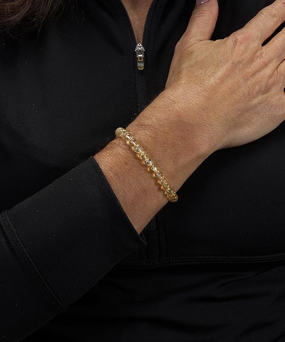 - CONTAINS: A citrine bracelet made with 6mm semi-precious beads packaged inside a protective cloth drawstring pouch. Citrine is a yellow or gold form of quartz and is the birthstone of November. Citrine has long been worn in the eastern countries to attract wealth and prosperity.