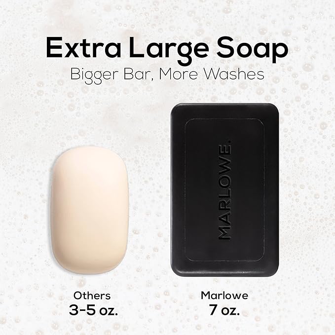 MARLOWE. No. 106 Charcoal Soap 7 oz, Body Bar Soap for Men, Cleansing, Purifying & Hydrating with Natural Extracts, Shea Butter, Olive Oil & Green Tea Extracts, Fresh Woodsy Scent