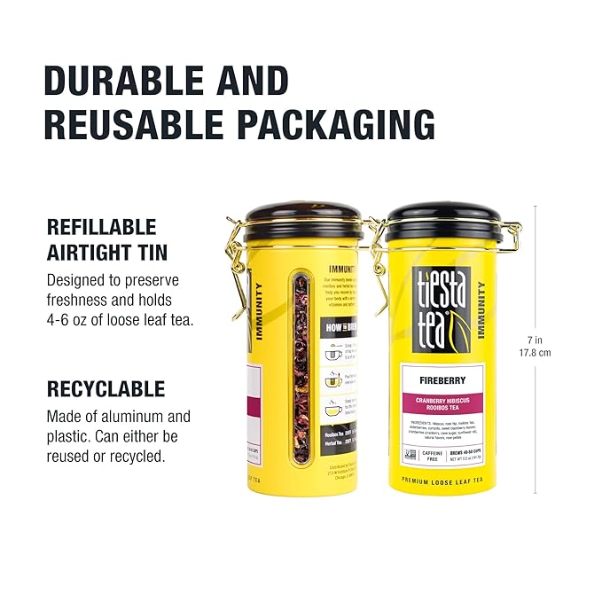 - REUSABLE TEA TIN FOR TEA LOVERS: Our charming and reusable tin is the perfect gift for tea enthusiasts. Offering airtight storage, it ensures that your Hibiscus loose leaf tea remains cozy and fresh for 40-50 cups. Not only a functional addition to your tea collection, but it also sits beautifully on your countertop, a testament to your passion for fine teas.