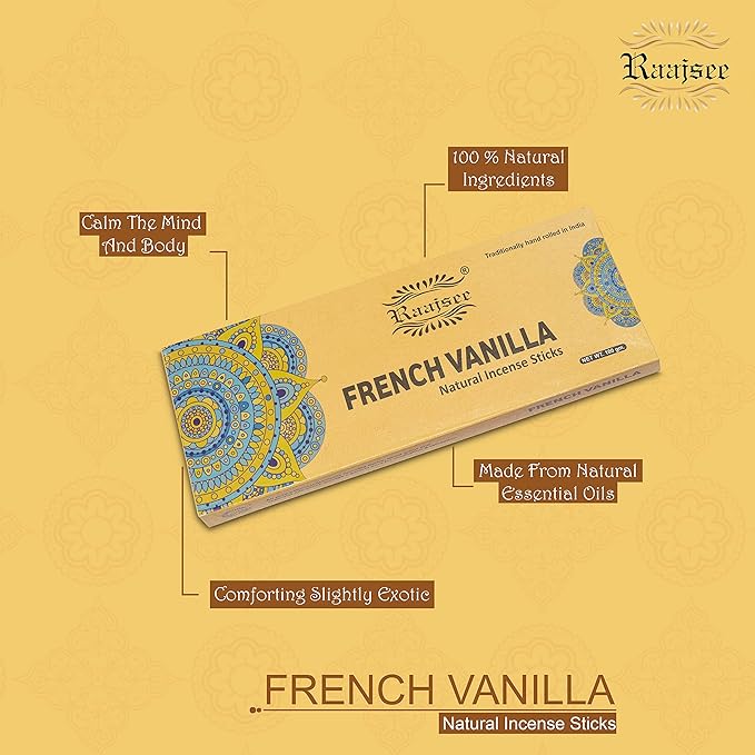 Raajsee Vnilla Incense Sticks 100 Gm Pack-100% Natural Insence Sticks -Organic Non Toxic - Charcoal Free - for Church,Aroma Therapy,Relaxation,Meditation