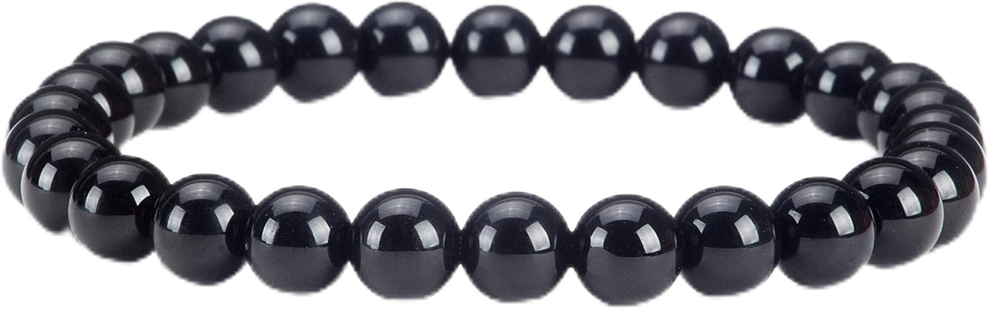 - CONTAINS: A black agate bracelet made with 6mm semi-precious beads packaged inside a protective cloth drawstring pouch. Black agate, also sold as black onyx, is a jet-black opaque form of agate or chalcedony. Black agate is a hard stone and takes a very nice polish. Natural agate has lines of white and gray so most of the black agate beads on the market have been dyed a solid black.