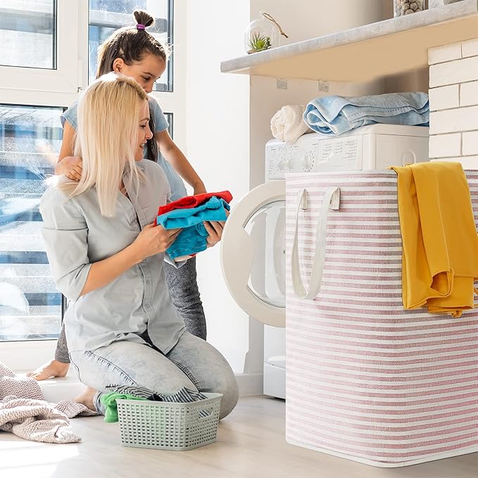 Lifewit Laundry Hamper Large Collapsible Laundry Basket, Freestanding Waterproof Clothes Hamper Storage with Easy Carry Handles for Clothes in Bedroom Bathroom College Dorm for Adults, Pink, 80L