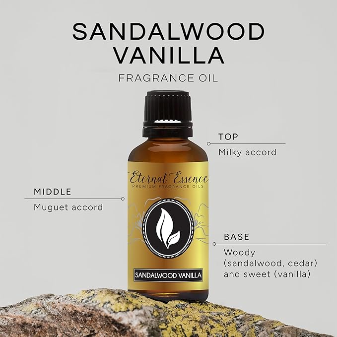 Eternal Essence Oils Sandalwood Vanilla 30ml Premium Fragrance Oil - for Candle, Soap Making, Aromatherapy, Diffusers, Home Care, & Humidifiers