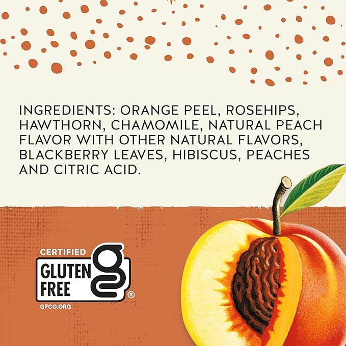 - Herbal: This herbal tea is packed with delightful peach flavor and floral chamomile. Reminiscent of peaches just picked from the orchard
