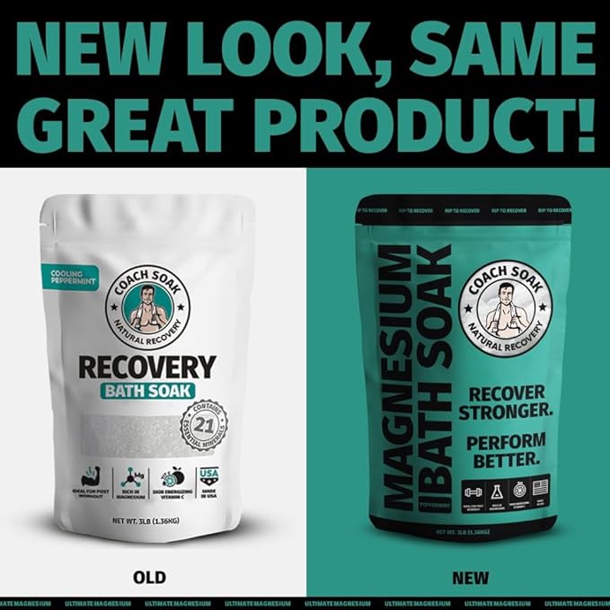 Coach Soak Recovery Bath Soak - Alternative to Epsom Salt Bath Soak - Fast-Absorbing Pure Magnesium Flakes with 21 Minerals, Bath Salts & Essential Oils - 48 oz, Cooling Peppermint
