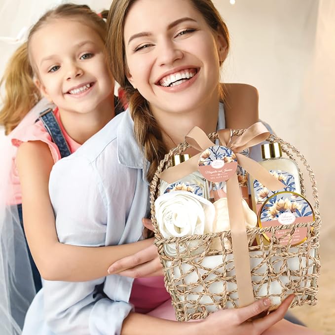 Home Spa Gift Basket, Bath Spa Kit for Women, with Body Lotion, Shower Gel, Bubble Bath, Body Scrub, Bath Salt, Bath Bomb, Bath Gift Set for Mother, Wife Her, with Magnolia and Jasmine Scent