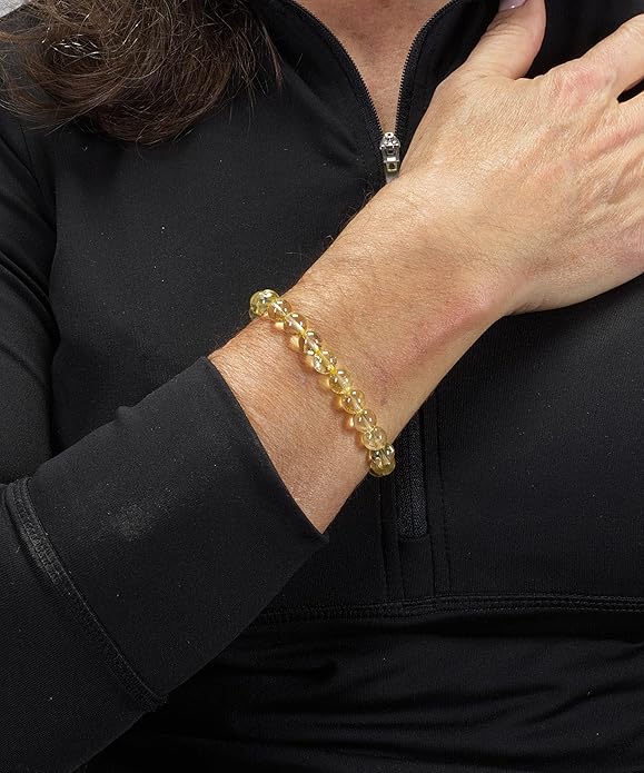 - CONTAINS: A citrine bracelet made with 8mm semi-precious beads packaged inside a protective cloth drawstring pouch. Citrine is a yellow or gold form of quartz and is the birthstone of November. Citrine has long been worn in the eastern countries to attract wealth and prosperity.