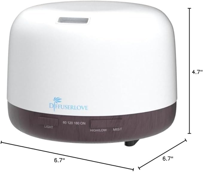 Diffuserlove Essential Oil Diffuser 500ML Aromatherapy Diffuser Mist Humidifiers 7 Color LED Lights Diffusers for Home Office Bedroom (Size:6.7" L x 6.7" W x 4.7" H)