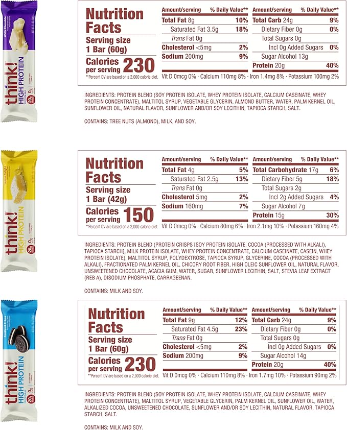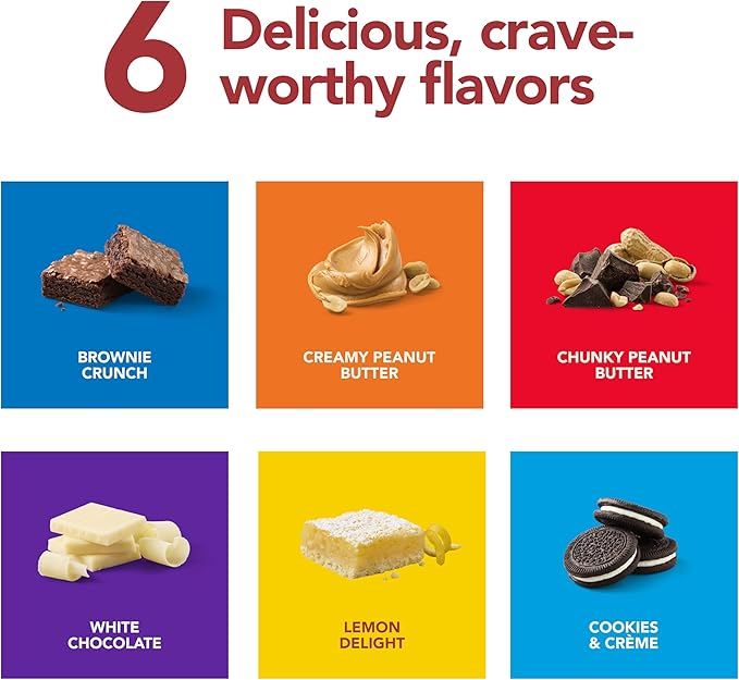 - The think! Best Seller Variety Pack includes our most popular indulgent flavors: Creamy Peanut Butter, Lemon Delight, Chunky Peanut Butter, Brownie Crunch and two new flavors we know you will love our Cookies & Crème upgrade and White Chocolate.