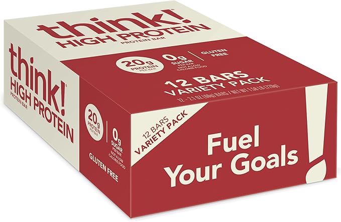 think! Protein Bars, High Protein Snacks, Gluten Free, Kosher Friendly,Variety Pack, Nutrition Bars, 2.1 Oz per Bar, 12 Count (Packaging May Vary)