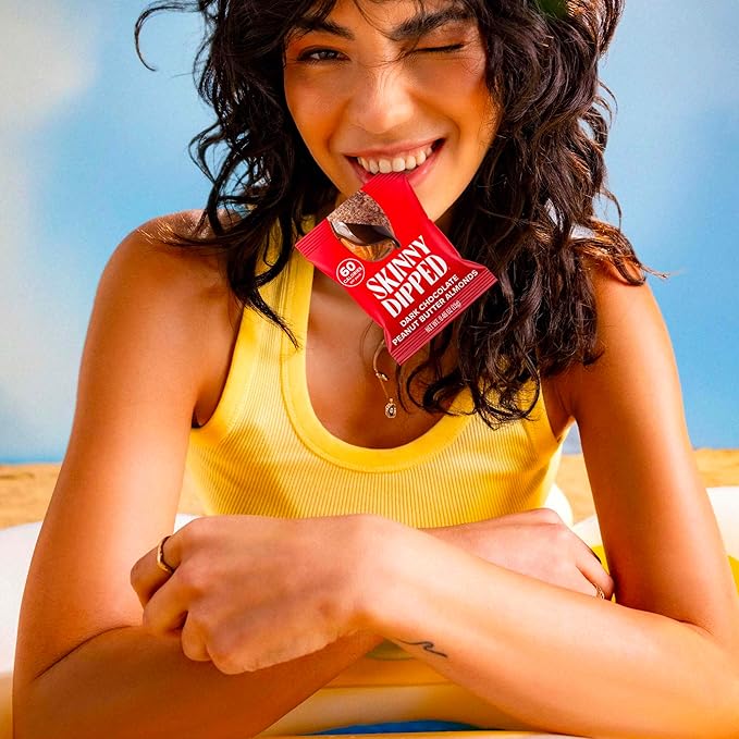 - SALTY, SWEET & PEANUT-BUTTERY: Whole roasted almonds, kissed with maple sugar and sea salt, SkinnyDipped in a thin layer of dark chocolate and finished with a hint of peanut butter. Packaging may vary.