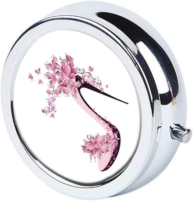 Crystal High Heels Pill Box Purse Pocket Small Round Silver Pill Case Decorative Box Metal Medicine Vitamin Pill Organizer Portable Unique Gift