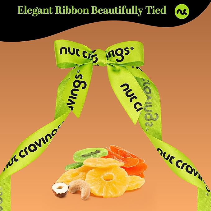 NUT CRAVINGS - Diwali Sweets Hamper Dried Fruit & Mixed Nuts Gift Basket in Reusable Wooden Tray + Ribbon (12 Assortments) Food Arrangement, Healthy Snack Care Package,