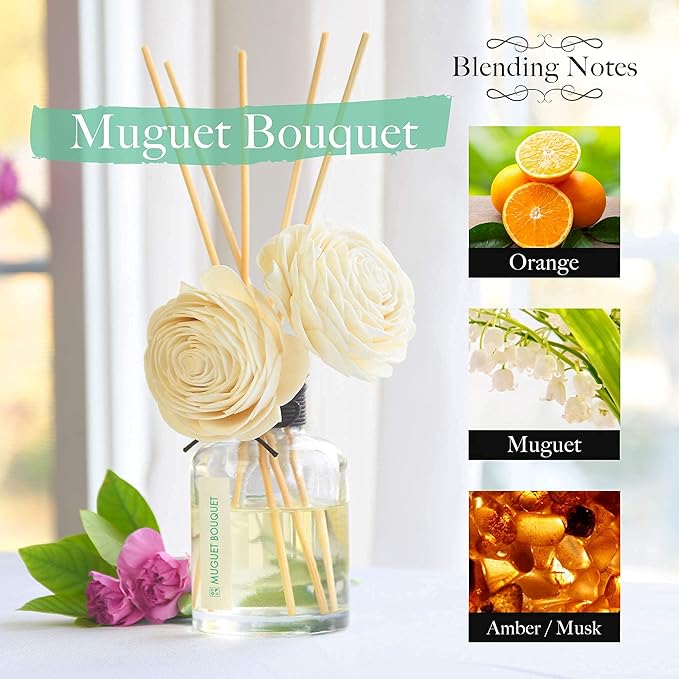 - Muguet Bouquet: The dominating Fragrance of Musk and Amber mixed with Lily-of-the-Valley/Osmanthus, and a hint of Orange will fill up your room with a sweet and exotic sense.