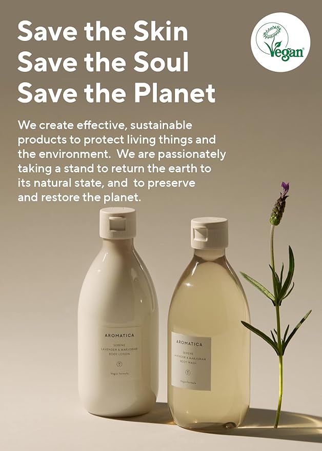 AROMATICA Serene Body Wash Lavender & Marjoram 10.14oz / 300ml, Vegan, Daily In-Shower Wash Blended w/Naturally Derived Scents